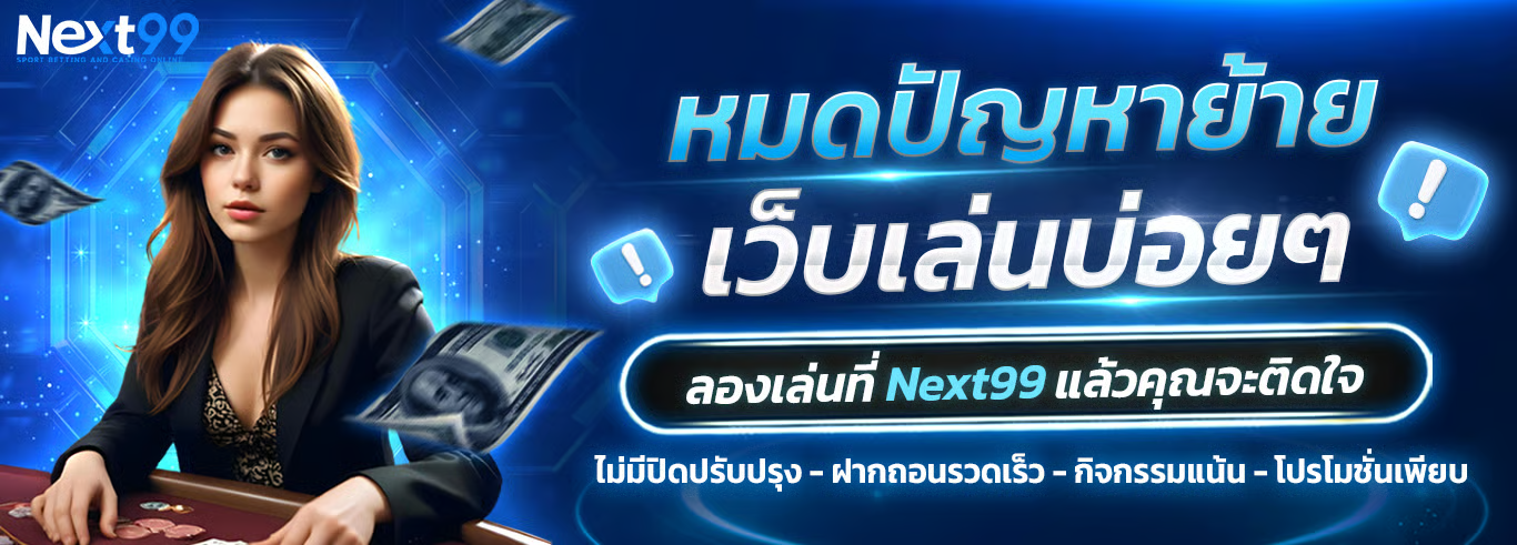 Next99 ศูนย์รวมเกมพนันออนไลน์ระดับพรีเมียม ที่ได้รับการยอมรับจากนักพนันทั่วเอเชีย ด้วยระบบที่ทันสมัย รองรับการใช้งานทั้งคอมพิวเตอร์และมือถือ พร้อมระบบฝาก-ถอนอัตโนมัติที่รวดเร็วภายใน 30 วินาที ให้บริการครบครันทั้งคาสิโนสด สล็อต กีฬา และเกมยอดนิยมอื่นๆ อีกมากมาย